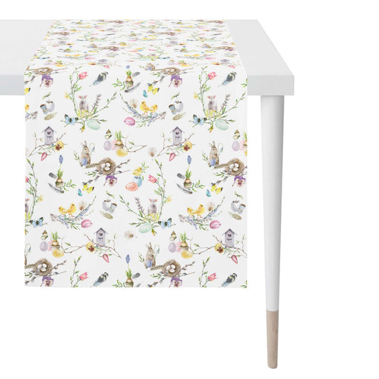 APELT 6412 Tischläufer Blüten Zweige Hühner Ostermotiv
