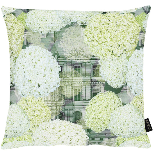 APELT 7307 Kissen Hortensien allover schwarz weiß Stadtansicht