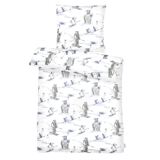 APELT Nils Bettwäsche Baumwoll-Satin Eisbären und Pinguine auf der Piste