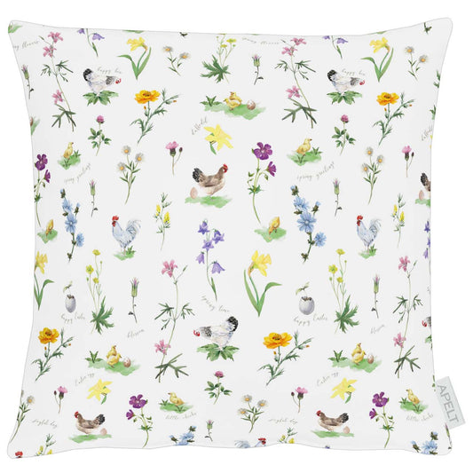 APELT 6412 Kissenbezug Blüten Zweige Hühner Ostermotiv
