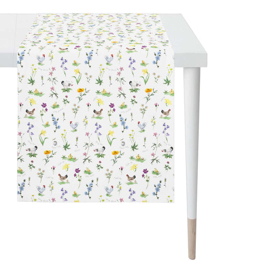 APELT 6412 Tischläufer Blüten Zweige Hühner Ostermotiv