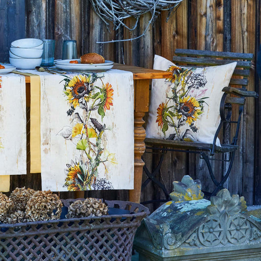nicht vorrätigAPELT 2711 Kissen Sonnenblumen Hortensien Baumwolle