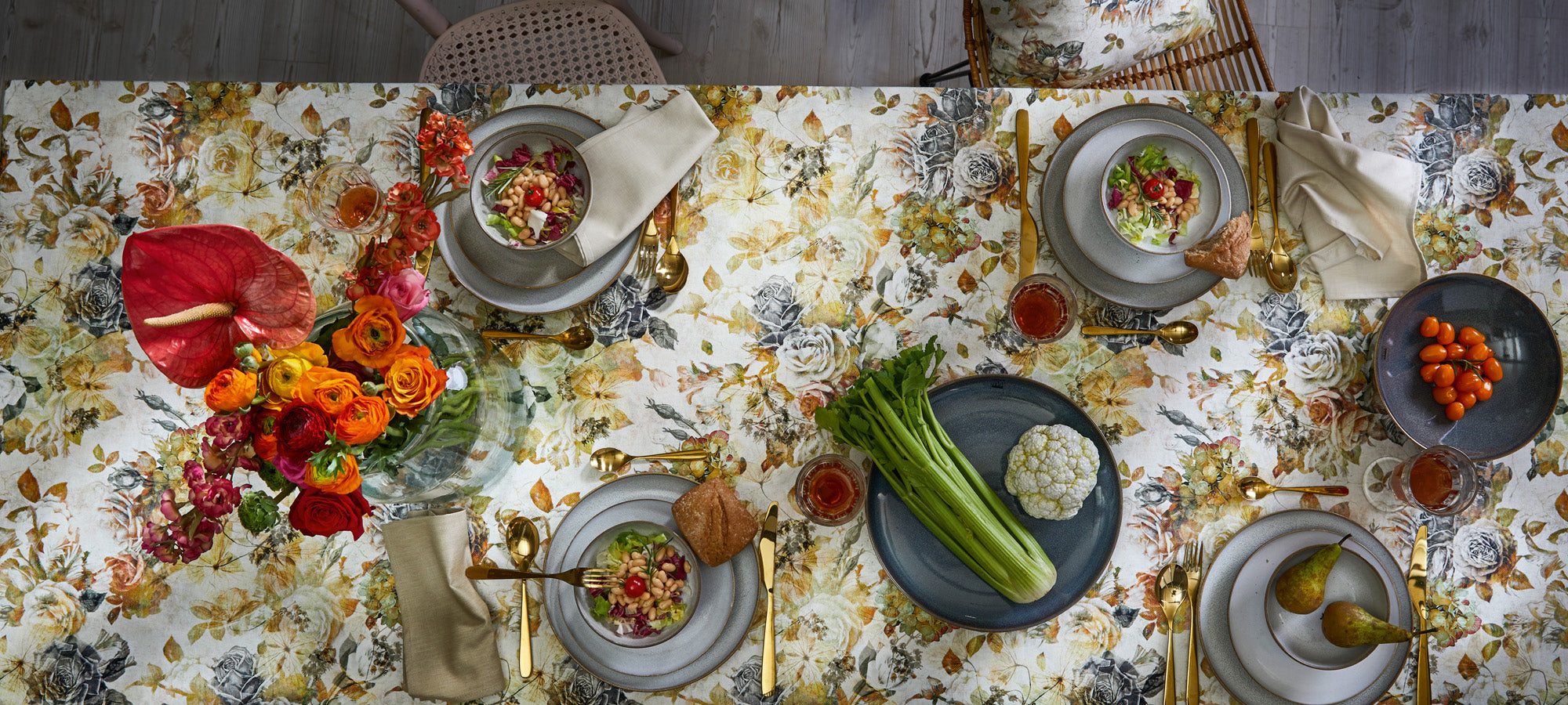 APELT 2708 Tischdecke Rosen Herbstblumen Baumwolle
