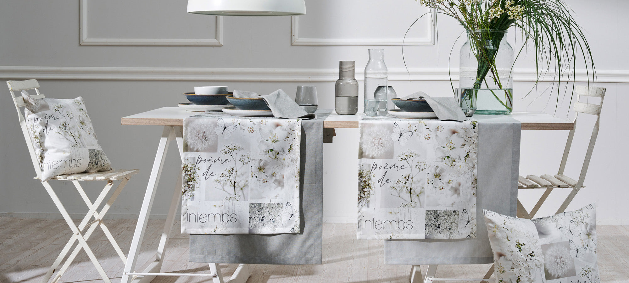 APELT 7002 Tischläufer Sommerblüten als Faux-Uni all-over