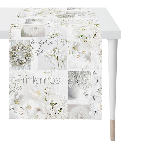 APELT 6506 Tischläufer Schriftmotiv Schmetterlig Frühjahrsblüten