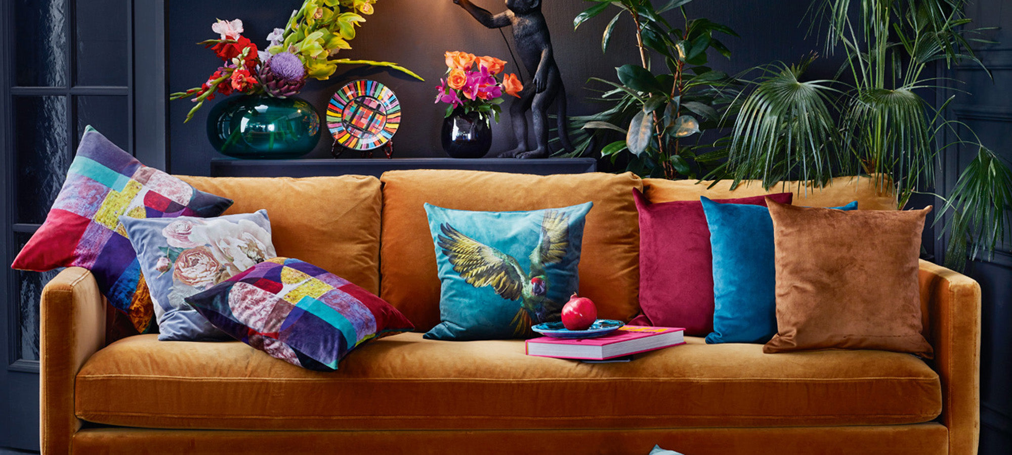 APELT Elliot Kissenbezug Papagei Samt grün türkis
