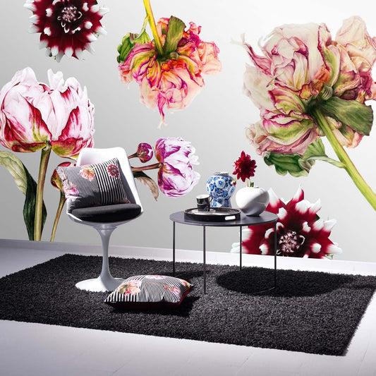 APELT Leony Kissen Päonien Blütenmotiv Samt schwarz weiß gesreift