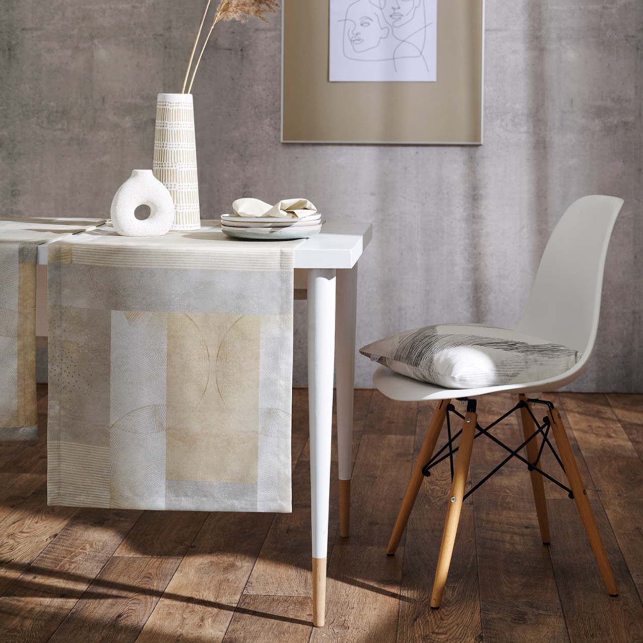 Lieferzeit 3-5 WerktageÖkotex 100Rd-j*Hochwertiger digitaler Druckstoff aus dem Hause Apelt. Grafisches Topdesign! Der richtige Stoff für zeitgemäßes Einrichten mit Textil. Im Angebot als schöner Läufer und Mitteldecke mit aufwendig genähter Briefecke. Die eleganten Kissenhüllen haben einen praktischen Reißverschluss. Das hochwertige Material besteht aus 30% feiner Baumwolle und 70% Polyester. Waschbar mit 30°C im Schonwaschgang, feucht aufhängen, auf 2 Punkt bügeln. Schadstoffgeprüft nach OEKO?TEX® STANDARD 100 (16.0.97246) und made in Europe.