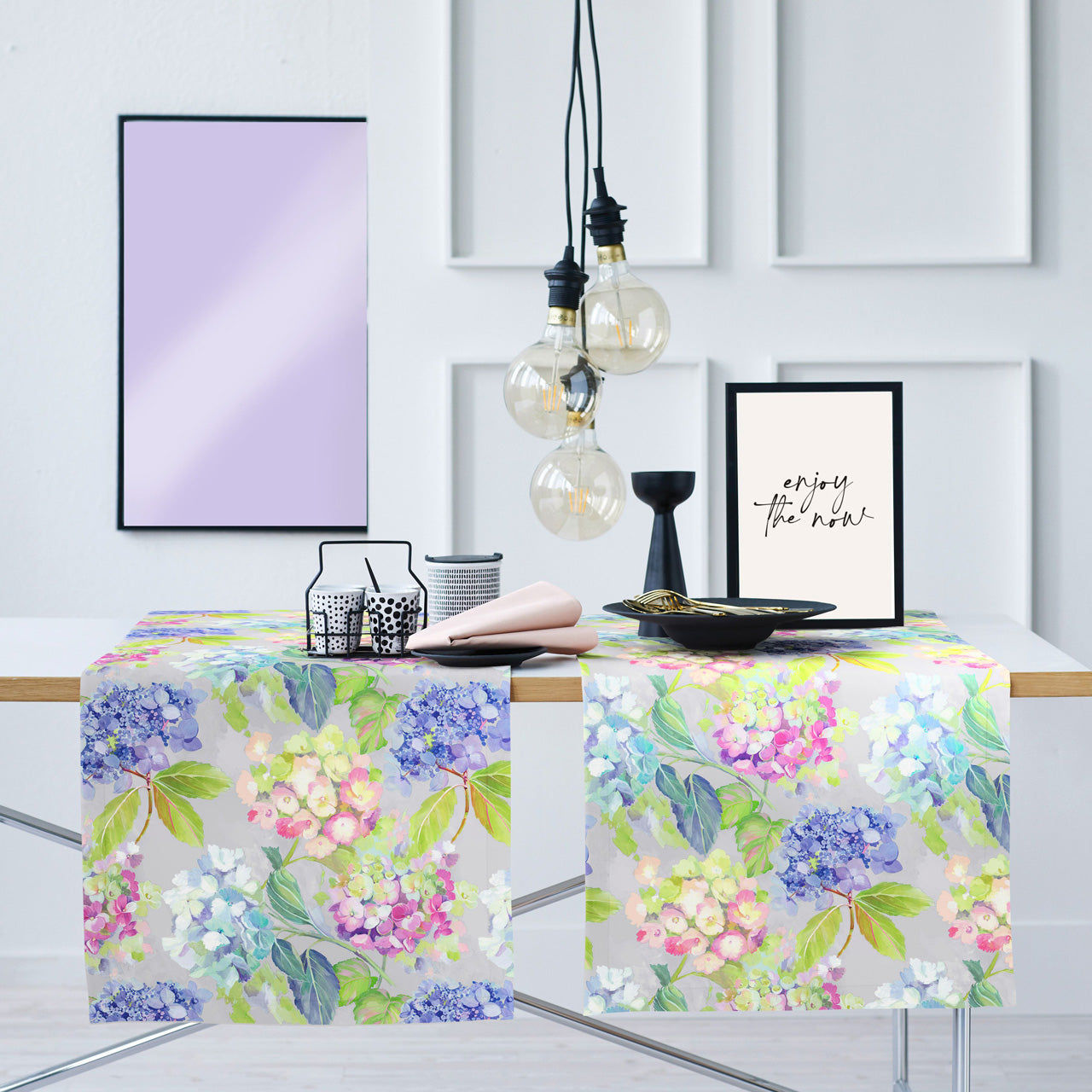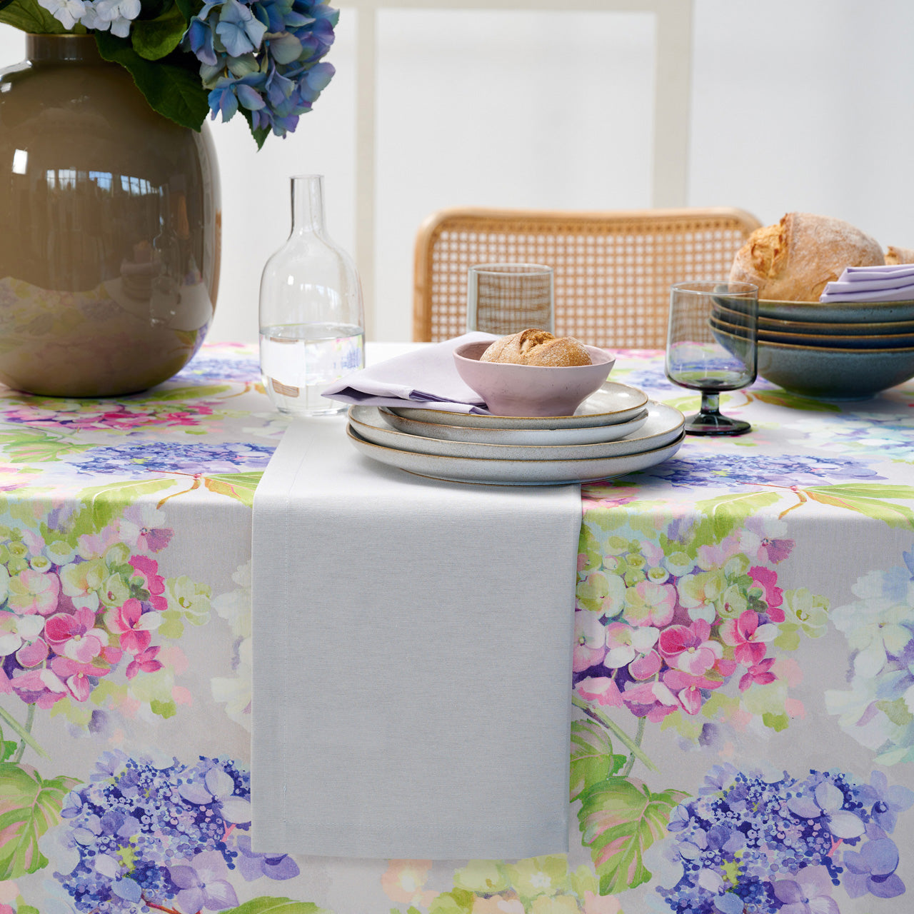 APELT 3108 Tischläufer Hortensien im Aquarellstil