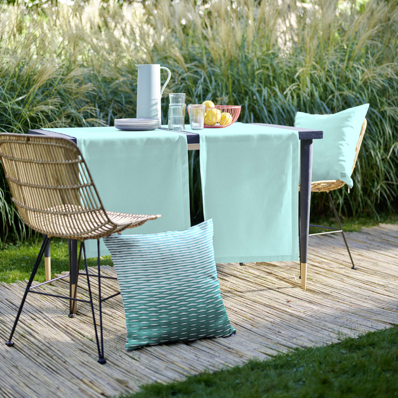 FleckschutzLieferzeit 3-5 WerktageÖkotex 100Rd-j*Die technisch anspruchsvolle neue Outdoor-Uni-Serie von Apelt. In vielen einsatzfähigen Farben, super-trendy auf einem eigens für den Außenbereich entwickelten textilen Material, erstklassige Verarbeitung als Läufer, die Kissenhülle hat einen trendy Big-Zipper. Mit unserer Outdoor-Kollektion lebt es sich draußen so stilvoll wie drinnen. Optimal für den Außenbereich technisch ausgestattet: fleckgeschützt, aus strapazierfähigen Garnen, hohe Lichtechtheit und besten Materialeigenschaften wie Atmungsaktivität und einem angenehmen textilen Griff. 100% Polyacryl. Schadstoffgeprüft nach OEKO?TEX® STANDARD 100 (16.0.97246) und made in Europe. Waschbar mit 30°C im Schonwaschgang, feucht aufhängen, auf 2 Punkt bügeln, mit hohem Lichtechtheitswert 7.