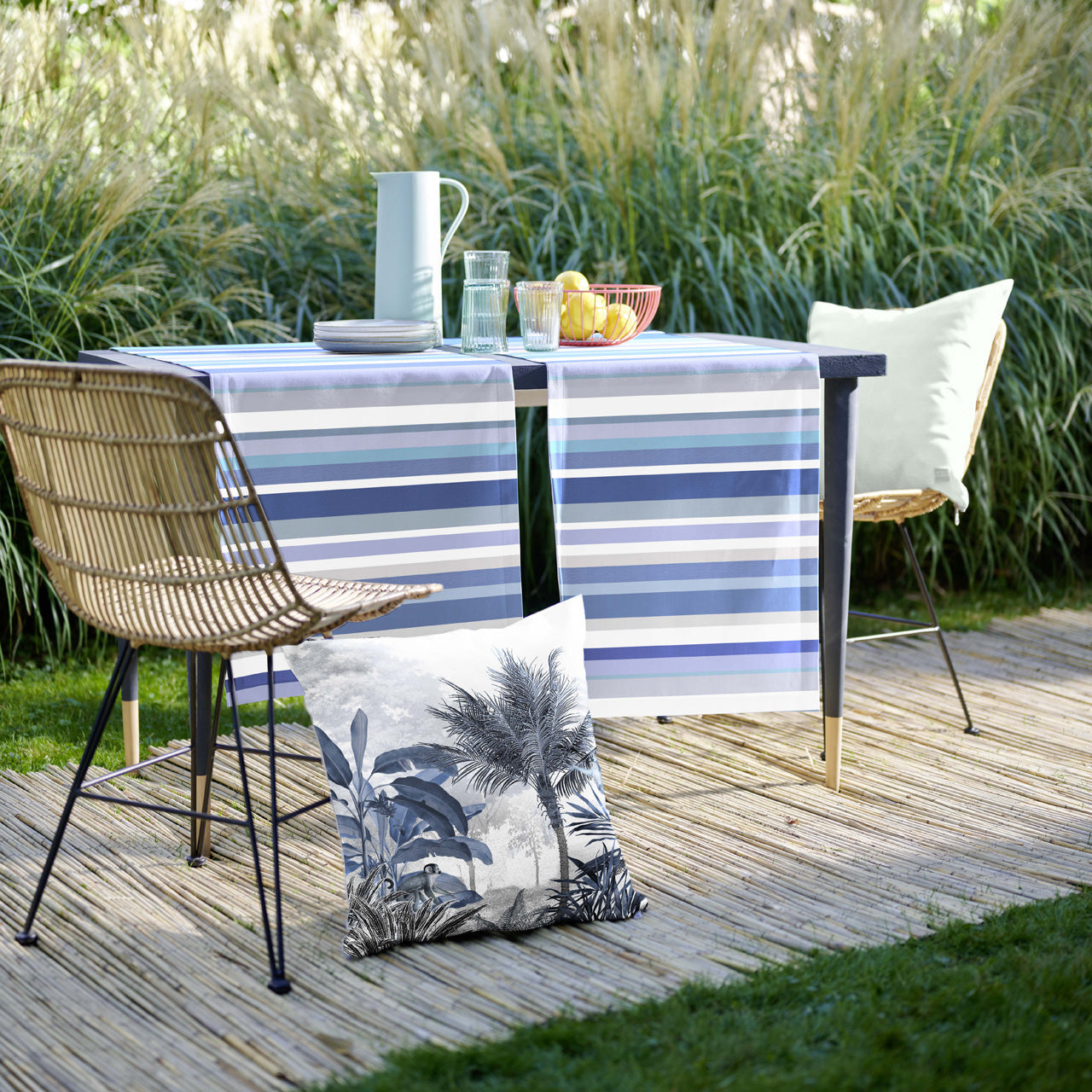 FleckschutzLieferzeit 3-5 WerktageÖkotex 100Rd-j*Die technisch anspruchsvolle neue Outdoor-Serie von Apelt. Ein Streifendesign in zwei tollen Farben, super-trendy auf einem eigens für den Außenbereich entwickelten textilen Material, erstklassige Verarbeitung als Läufer, die Kissenhülle hat einen trendy Big-Zipper. Mit unserer Outdoor-Kollektion lebt es sich draußen so stilvoll wie drinnen. Optimal für den Außenbereich technisch ausgestattet: fleckgeschützt, aus strapazierfähigen Garnen, hohe Lichtechtheit und besten Materialeigenschaften wie Atmungsaktivität und einem angenehmen textilen Griff. 100% Polyacryl - Schadstoffgeprüft nach OEKO?TEX® STANDARD 100 (16.0.97246) und made in Europe. Waschbar mit 30°C im Schonwaschgang, feucht aufhängen, auf 2 Punkt bügeln, mit hohem Lichtechtheitswert 7.