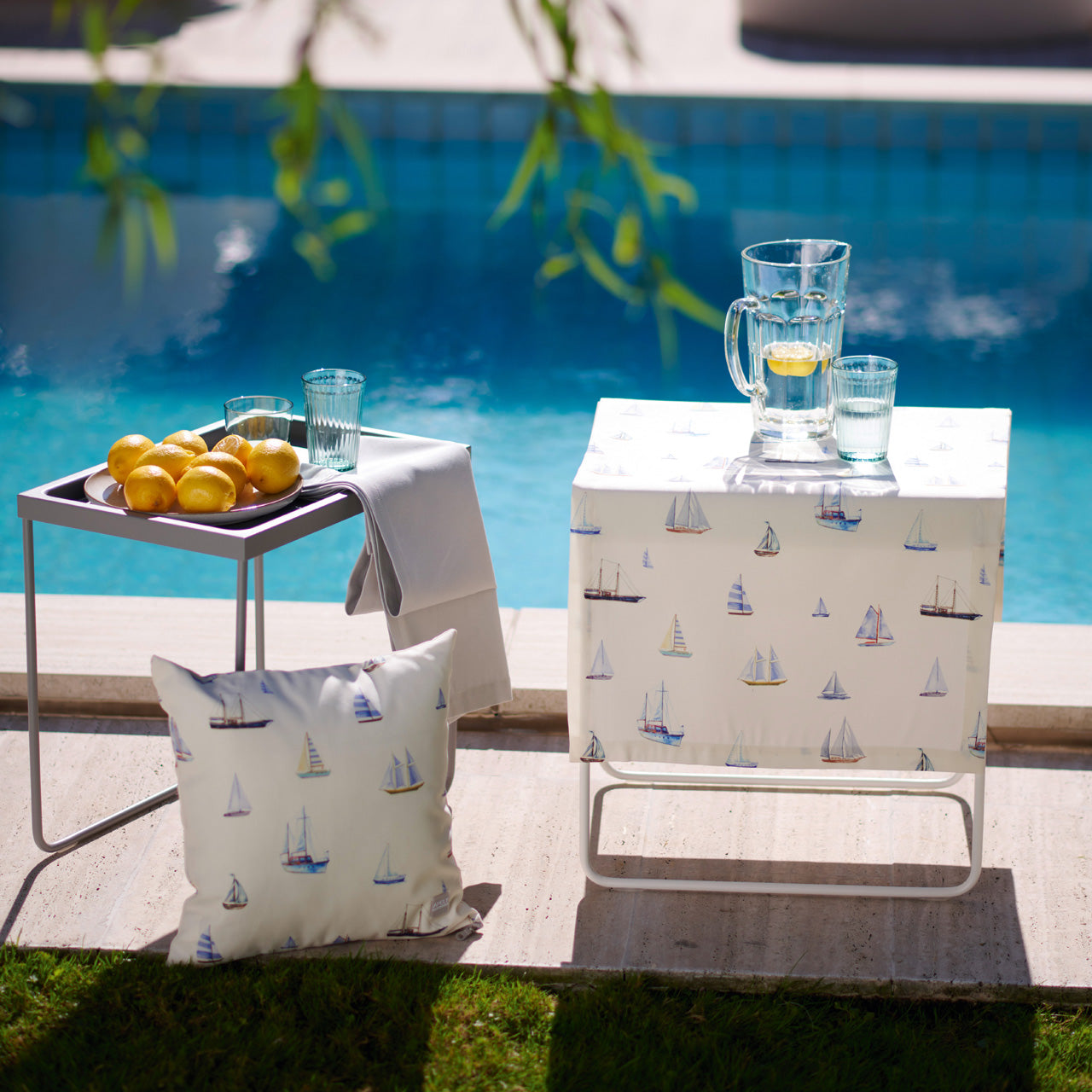 FleckschutzLieferzeit 3-5 WerktageÖkotex 100Rd-j*Die technisch anspruchsvolle Outdoor-Serie von Apelt. Kleine detailreich gestaltete, handgemalte Segelschiffe lassen von Ferientagen am Meer träumen. Umweltschonend digital gedruckt auf einem eigens für den Außenbereich entwickelten textilen Material, erstklassige Verarbeitung als Läufer und als Kissen in vielen Größen, die Kissenhülle hat einen trendy Big-Zipper. Mit unserer Outdoor-Kollektion lebt es sich draußen so stilvoll wie drinnen. Optimal für den Außenbereich technisch ausgestattet: fleckgeschützt, aus strapazierfähigen Garnen, hohe Lichtechtheit und besten Materialeigenschaften wie Atmungsaktivität und einem angenehmen textilen Griff, aus 100% Polyacryl. Schadstoffgeprüft nach OEKO?TEX® STANDARD 100 (16.0.97246) und made in Europe. Waschbar mit 30°C im Schonwaschgang, feucht aufhängen, auf 2 Punkt bügeln. Mit hohem Lichtechtheitswert 7 !