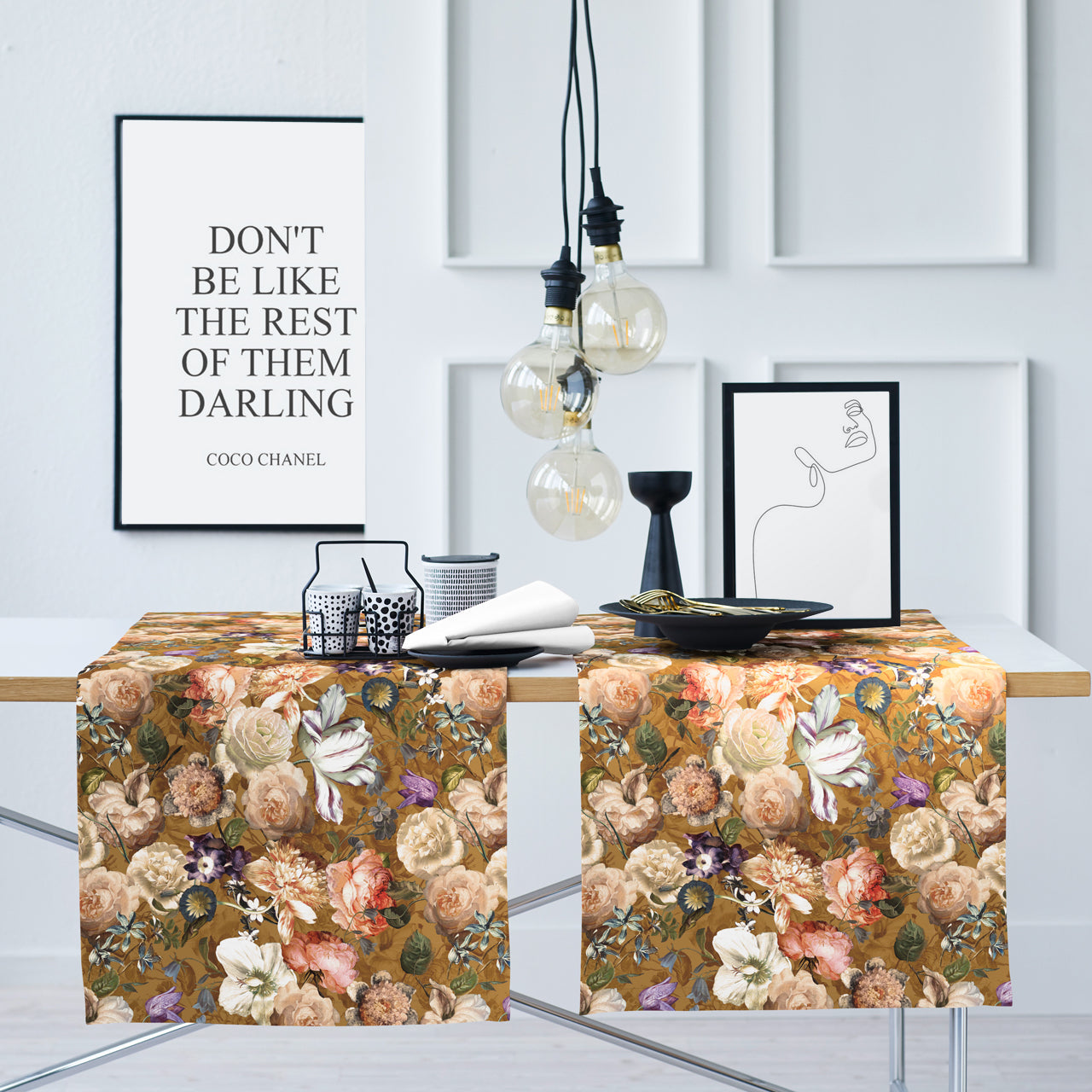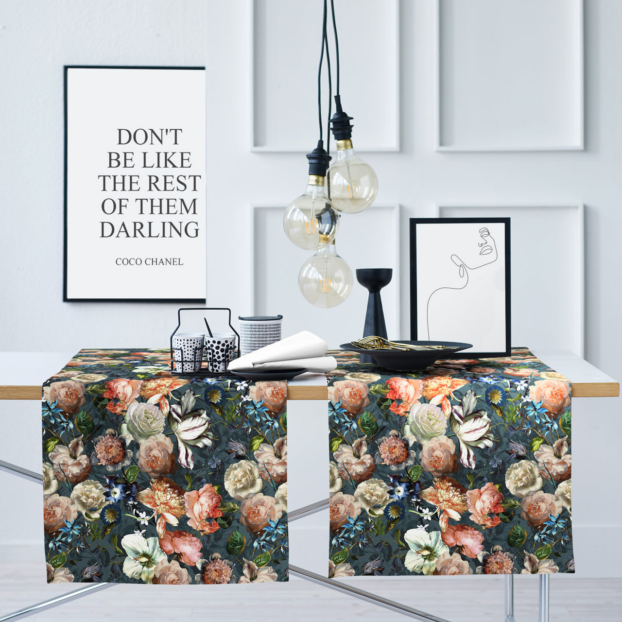 APELT 5251 Tischläufer Rosen Herbstblumen allover