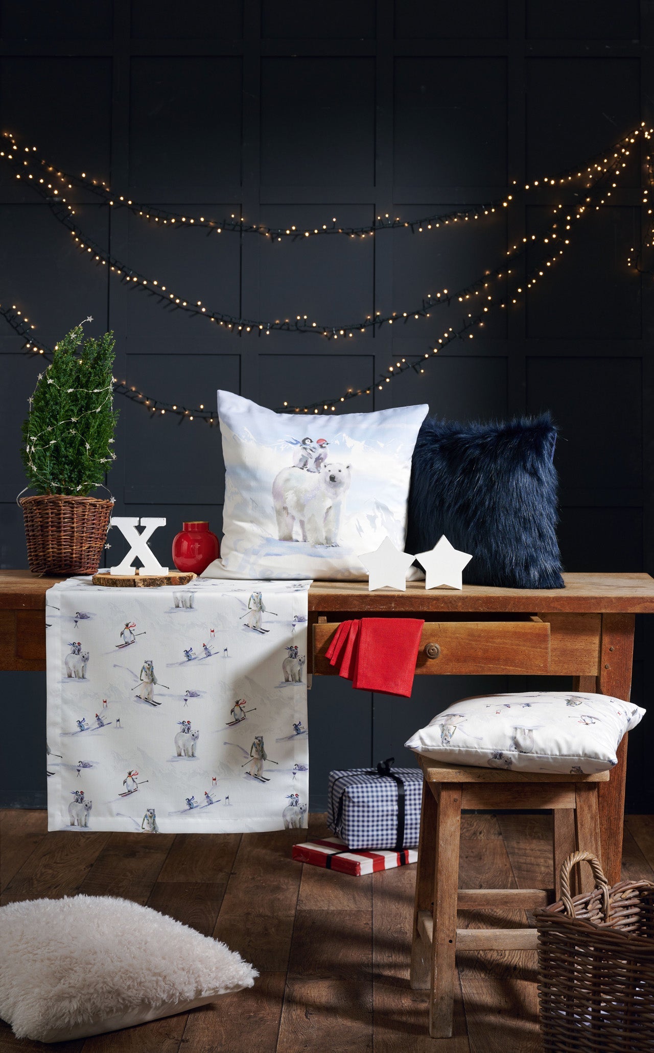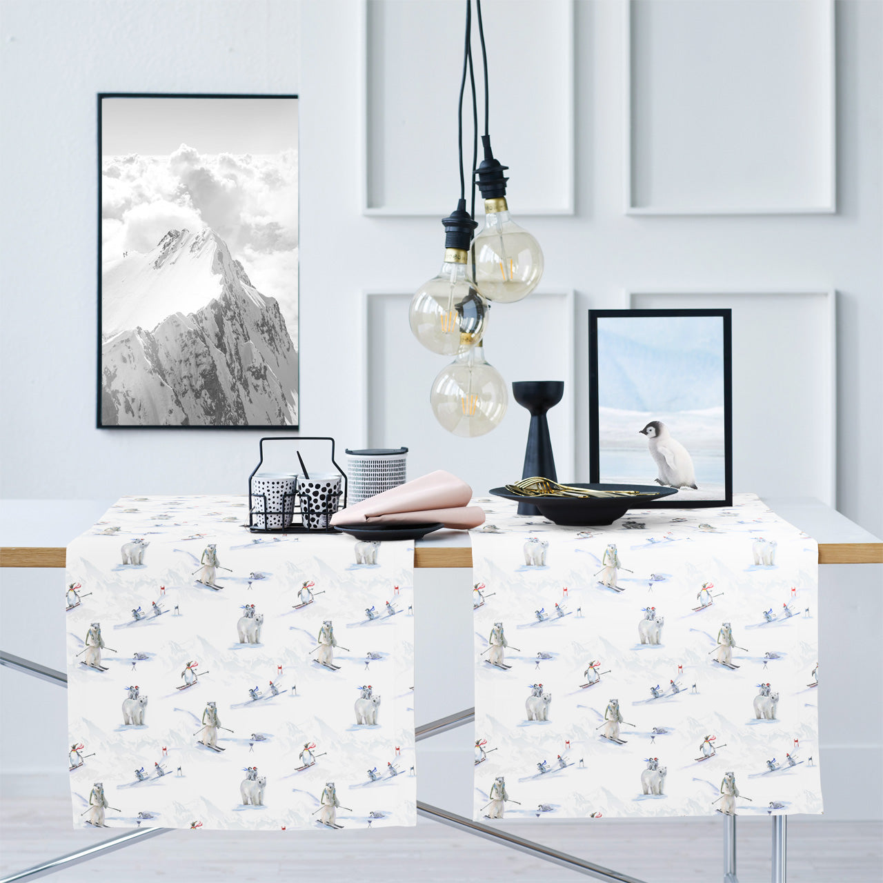 Romantisches Winterwelt-Motiv aus dem Hause Apelt. Ein echter Winter-Hingucker mit Eisbären und Co. die sich beim Skilaufen vergnügen. Für die jahreszeitliche Weihnachtsdeko. Viele verschiedene Größen, erstklassige Verarbeitung, verschiedene Kissengrößen, als eleganter Läufer, als Tischdecke, als Mitteldecke und Tischband mit edel zulaufender Spitze und als Set. Alle Produkte mit Briefecke konfektioniert. Die Kissenhülle hat einen praktischen Reißverschluß. Der hochwertig designte Digitaldruck ist auf 30% Baumwolle und 70% Polyester produziert. Waschbar mit 30°C im Schonwaschgang, Kissen vorher auf links wenden, feucht aufhängen, auf 2 Punkt bügeln. Schadstoffgeprüft nach OEKO?TEX® STANDARD 100 (16.0.97246) und made in Europe.