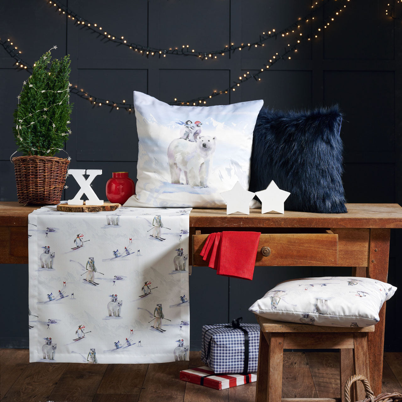 Romantisches Winterwelt-Motiv aus dem Hause Apelt. Ein echter Winter-Hingucker mit Eisbären und Co. die sich beim Skilaufen vergnügen. Für die jahreszeitliche Weihnachtsdeko. Viele verschiedene Größen, erstklassige Verarbeitung, verschiedene Kissengrößen, als eleganter Läufer, als Tischdecke, als Mitteldecke und Tischband mit edel zulaufender Spitze und als Set. Alle Produkte mit Briefecke konfektioniert. Die Kissenhülle hat einen praktischen Reißverschluß. Der hochwertig designte Digitaldruck ist auf 30% Baumwolle und 70% Polyester produziert. Waschbar mit 30°C im Schonwaschgang, Kissen vorher auf links wenden, feucht aufhängen, auf 2 Punkt bügeln. Schadstoffgeprüft nach OEKO?TEX® STANDARD 100 (16.0.97246) und made in Europe.