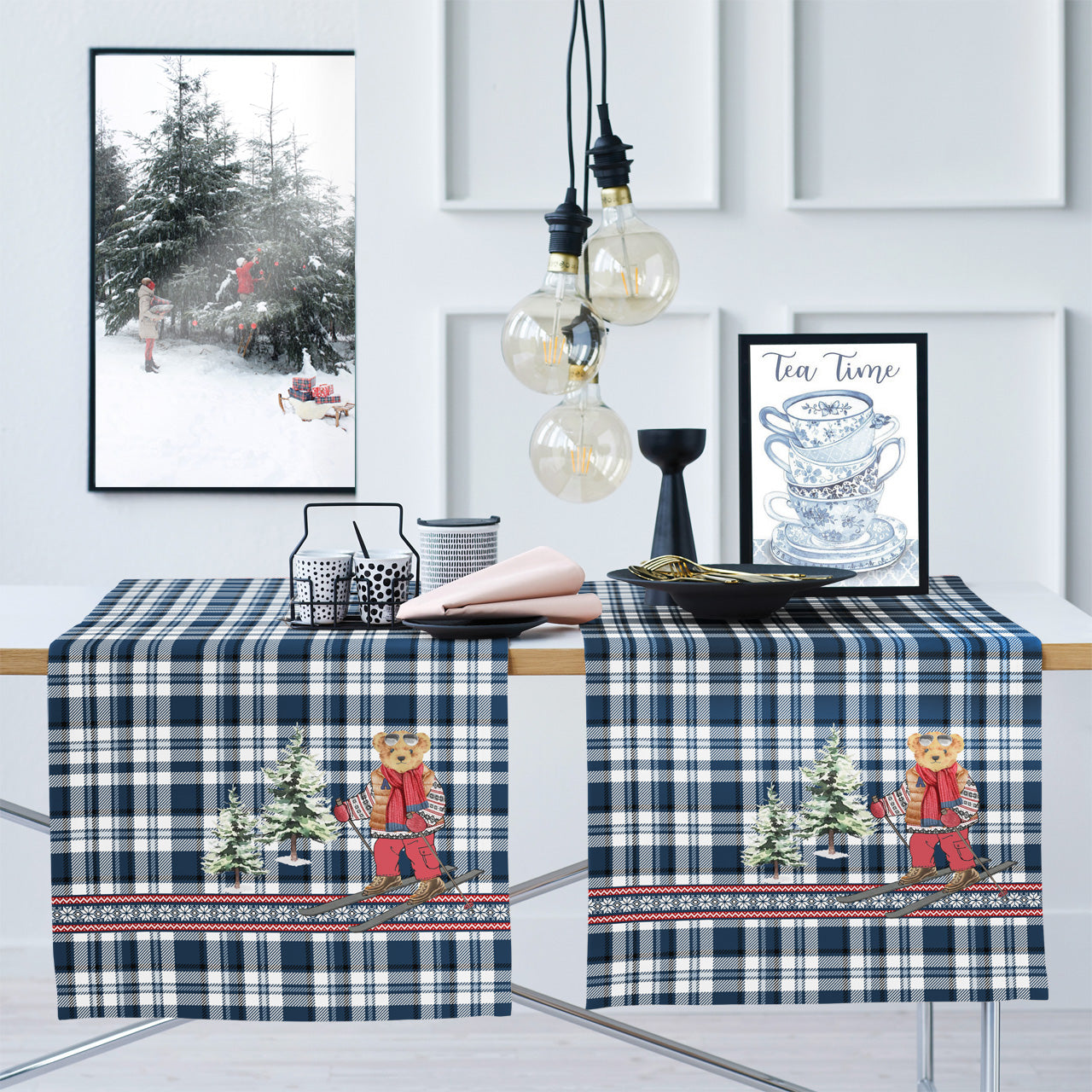 APELT 5802 Läufer stylischer Bär kombiniert mit Karomuster
