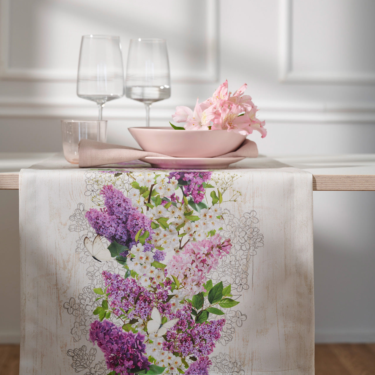 APELT 6404 Tischläufer Frühjahrsblüten Flieder