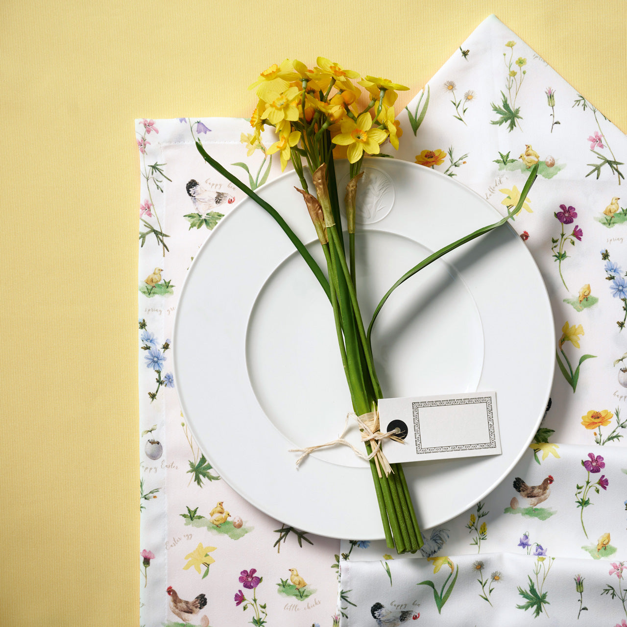 APELT 6412 Tischband Blüten Zweige Hühner Ostermotiv