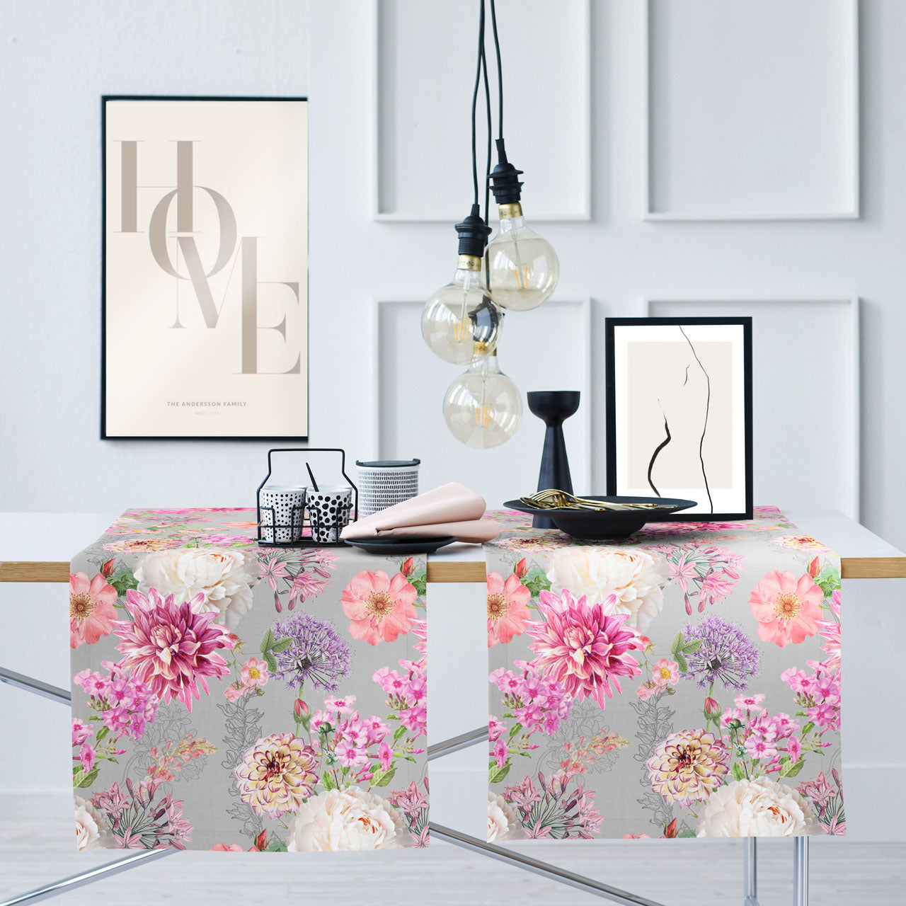 Exklisves Sommerblumen all-over in zwei Farbstellungen aus dem Hause Apelt. Repräsentative, trendige Blumen werden modisch neu interpretiert. Das elegante Satingewebe aus der Serie Summertime ist hochwertig, umweltschonend digital bedruckt und mit viel Liebe zum Detail designt. Als schön genähter Läufer, Mitteldecke, große Tischdecke und als anspruchsvolles Kissen in vielen Größen und als schöne Nackenrolle mit praktischem Reißverschluss. Das hochwertige Material besteht aus 70% Polyester und 30% Baumwolle. Schadstoffgeprüft nach OEKO?TEX® STANDARD 100 (16.0.97246) und made in Europe. Waschbar mit 30°C im Schonwaschgang, feucht aufhängen, auf 2 Punk bügeln.