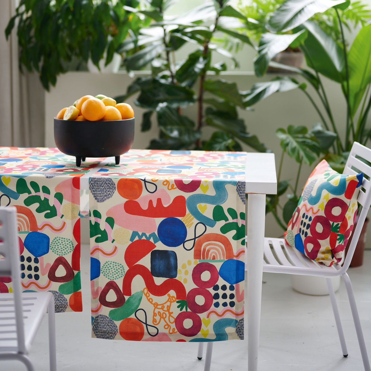 Grafisch- bunter Sommerläufer aus dem Hause Apelt. Angesagte grafische Formen im Scandi-Look auf elegantem Baumwollgewebe aus der Serie Summertime. Hochwertig, umweltschonend digital bedruckt und mit viel Liebe zum Detail designt. Als schön genähter Läufer, große Tischdecke und als anspruchsvolles Kissen in vielen Größen und als schöne Nackenrolle mit praktischem Reißverschluss. Das hochwertige Material besteht aus 100% Baumwolle. Schadstoffgeprüft nach OEKO?TEX® STANDARD 100 (16.0.97246) und made in Europe. Waschbar mit 30°C im Schonwaschgang, feucht aufhängen, auf 2 Punkt bügeln.