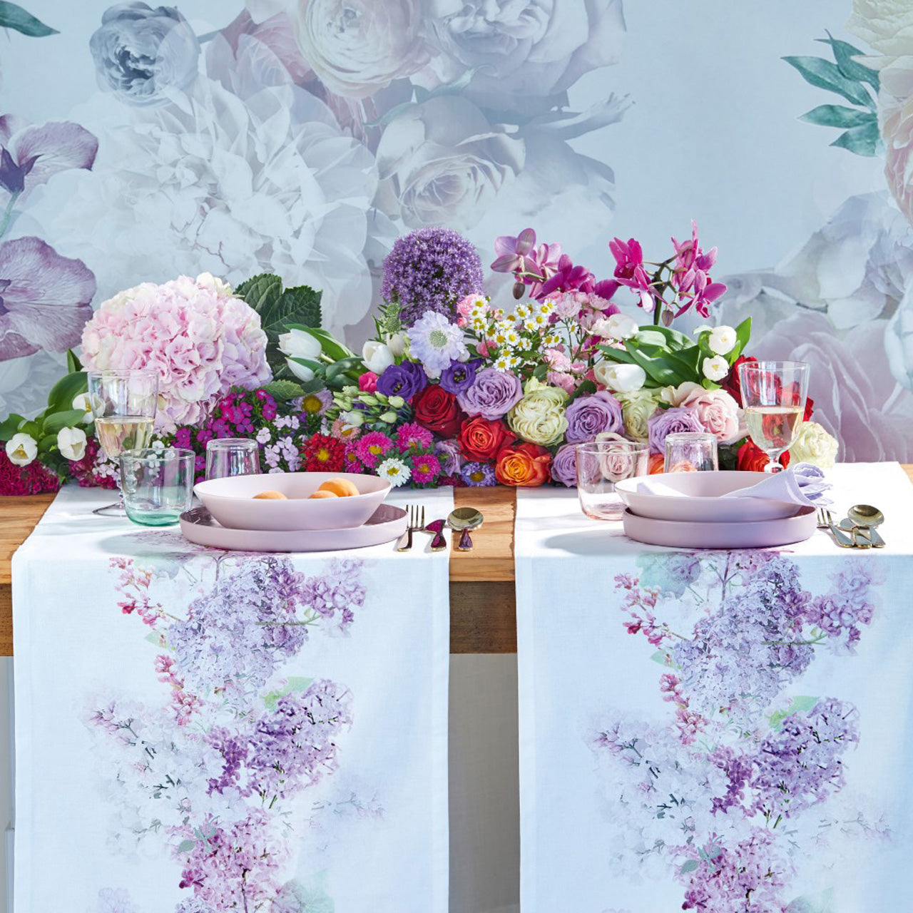 APELT 6913 Läufer Blütenmotiv Fliederzweige in Pastelltönen