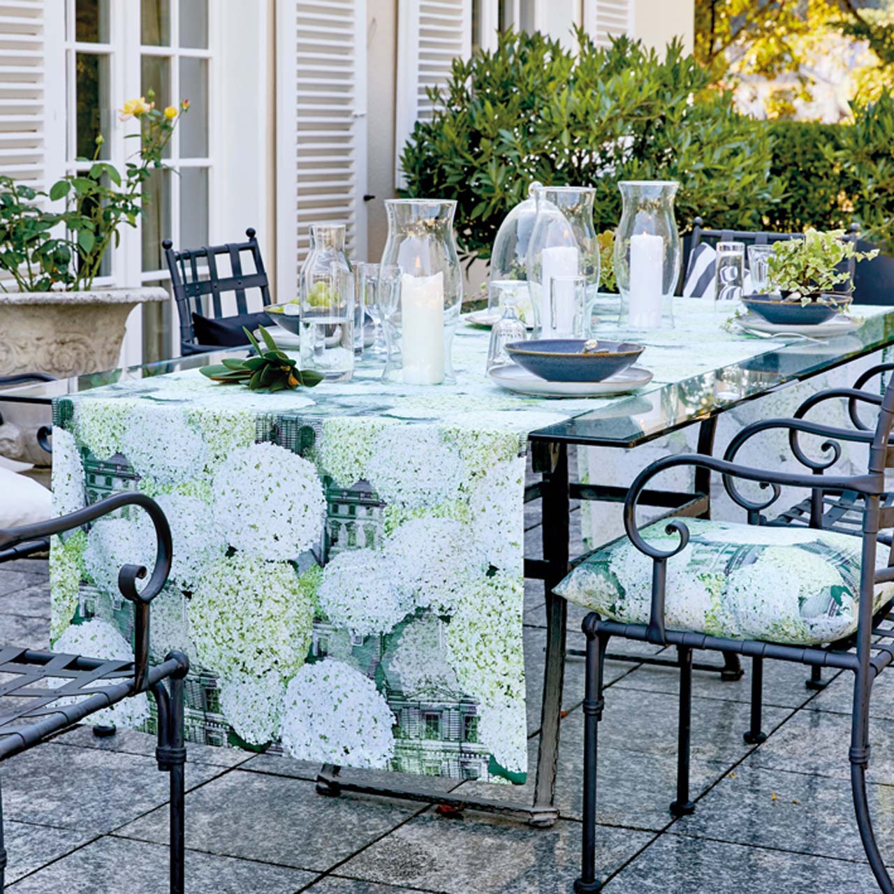 Lieferzeit 3-5 WerktageÖkotex 100Rd-j*Elegant interpretiertes Hortensienmotiv aus der Serie Summergarden aus dem Hause Apelt - mit viel Verständnis für gutes Design gestaltetes Hortensien- allover vor einer wunderschönen schwarz-weißen Stadtansicht. Das elegante Hortensien - allover passt bestens in jede zeitgemäße Einrichtung. Das Motiv ist digital gedruckt und mit viel Liebe zum Detail designt. Verschiedene Größen, erstklassige Verarbeitung, als große Tischdecke, Mitteldecke, Läufer und Kissen erhältlich. Die Kissenhüllen haben einen praktischen Reißverschluss. Das hochwertige Material besteht aus 70% Polyester und 30% Baumwolle. Schadstoffgeprüft nach OEKO?TEX® STANDARD 100 (16.0.97246) und made in Europe. Waschbar mit 30°C im Schonwaschgang, feucht aufhängen, auf 2 Punkt bügeln.