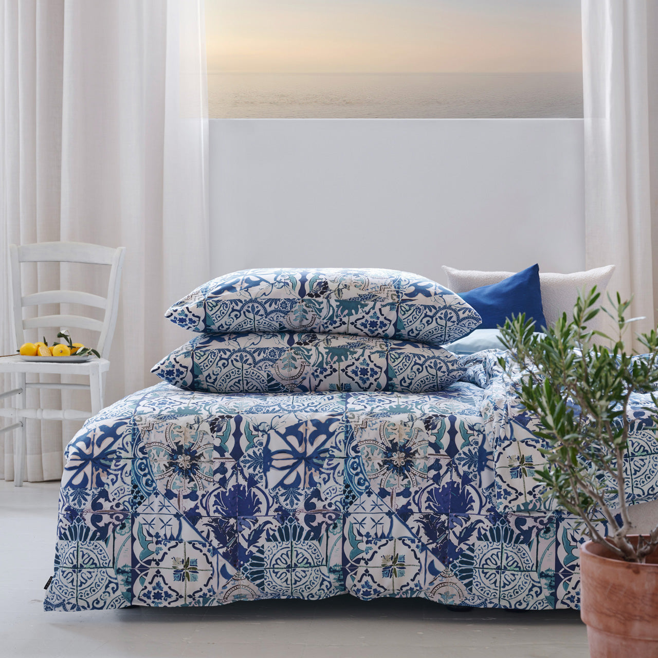 Ad(k>Unsere Sommer- Bettwäsche AZZURO steht für exklsive DesignBettwäsche im zeitgemäßen Stil. Handgemalte blau-weiße Kacheln im Amalfi-Style sind ein modisches Statement im Schlafbereich. Das Bettwäsche-Set bestehend aus Kissen + Deckbezug sind aus 100% Premium-Baumwoll-Satin, mercerisierte Baumwolle, atmungsaktive Naturfaser und haben einen weichen, seidigen Griff und sind resourcenschonend hergestellt dank umweltfreundlichem farbbeständigem Digitaldruckverfahren. Unsere Bettwäsche ist Pflege-u. Bügelleicht, Trocknergeeignet und hat ein verdeckt-eingenähten Markenreißverschluss. Schadstoffgeprüft nach OEKO?TEX® STANDARD 100 (16.0.97246), tragen das Umwelt-Zertifikat GOTS für nachhaltig produzierte Bettwäsche und sind Made in Germany.