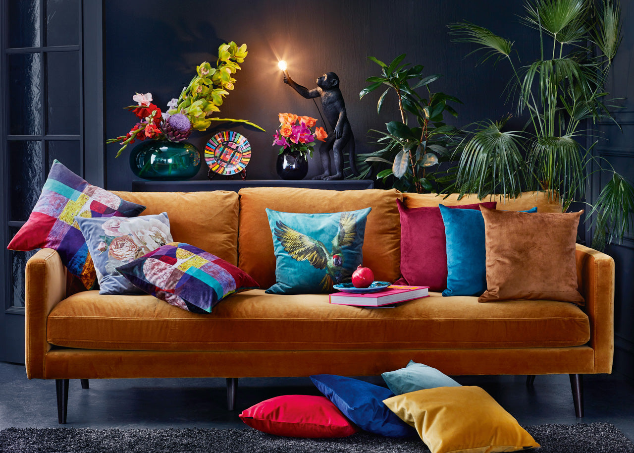 APELT Elliot Kissen Papagei Samt grün türkis