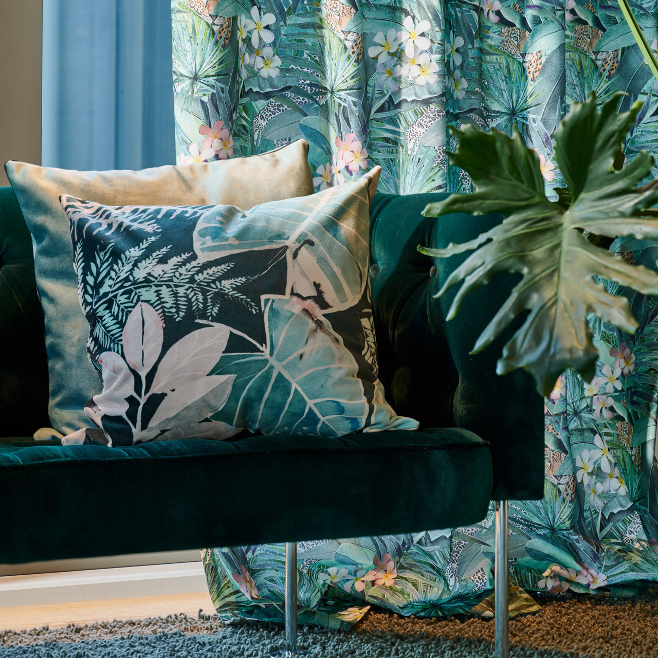 APELT Jody Samt Kissen künstlerisches Blattmotiv