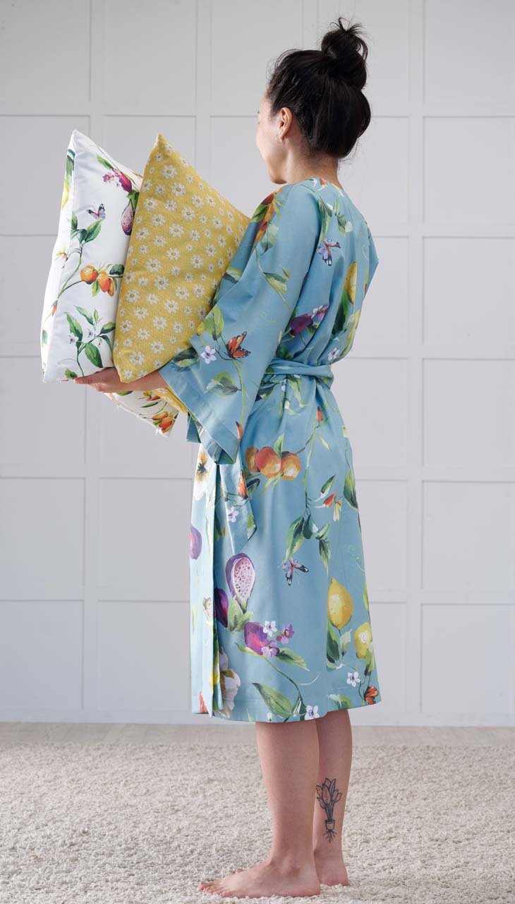 Ad(k>Unsere Frühjahrs Sommer Bettwäsche LIMONE steht für exklsive DesignBettwäsche im zeitgemäßen Stil. Gemalte Sommerfrüchte und südliche Blütenzweige mit Schmetterlingen in zwei schönen Farbstellungen sind ein elegantes Statement im Schlafbereich. Erhältlich auch als Kimono. Das Bettwäsche-Set bestehend aus Kissen + Deckbezug sind aus 100% Premium-Baumwoll-Satin, mercerisierte Baumwolle, atmungsaktive Naturfaser und haben einen weichen, seidigen Griff und sind resourcenschonend hergestellt dank umweltfreundlichem farbbeständigem Digitaldruckverfahren. Unsere Bettwäsche ist Pflege-u. Bügelleicht, Trocknergeeignet und hat ein verdeckt-eingenähten Markenreißverschluss. Unsere Produkte sind Schadstoffgeprüft nach OEKO?TEX® STANDARD 100 (16.0.97246), tragen das Umwelt-Zertifikat GOTS für nachhaltig produzierte Bettwäsche und sind Made in Germany.