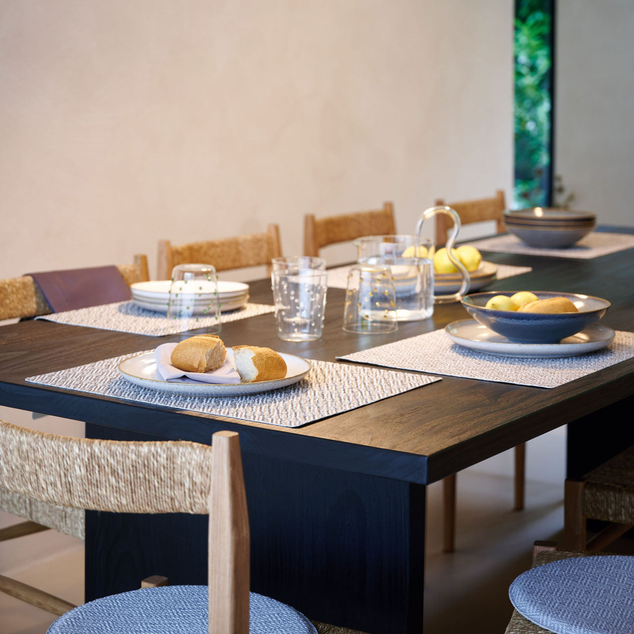 Loft-style - Urban living mit den pflegeleichten Sets, Läufern und Sitzkissen aus weichem Kunstmaterial- trendige Flechtstruktur und passend auf jeden Tisch - Flecken einfach wegwischen ! Aus 80% Polyvinylchlorid, 18% Polyester, 2% Polyurethan, made in Europe.