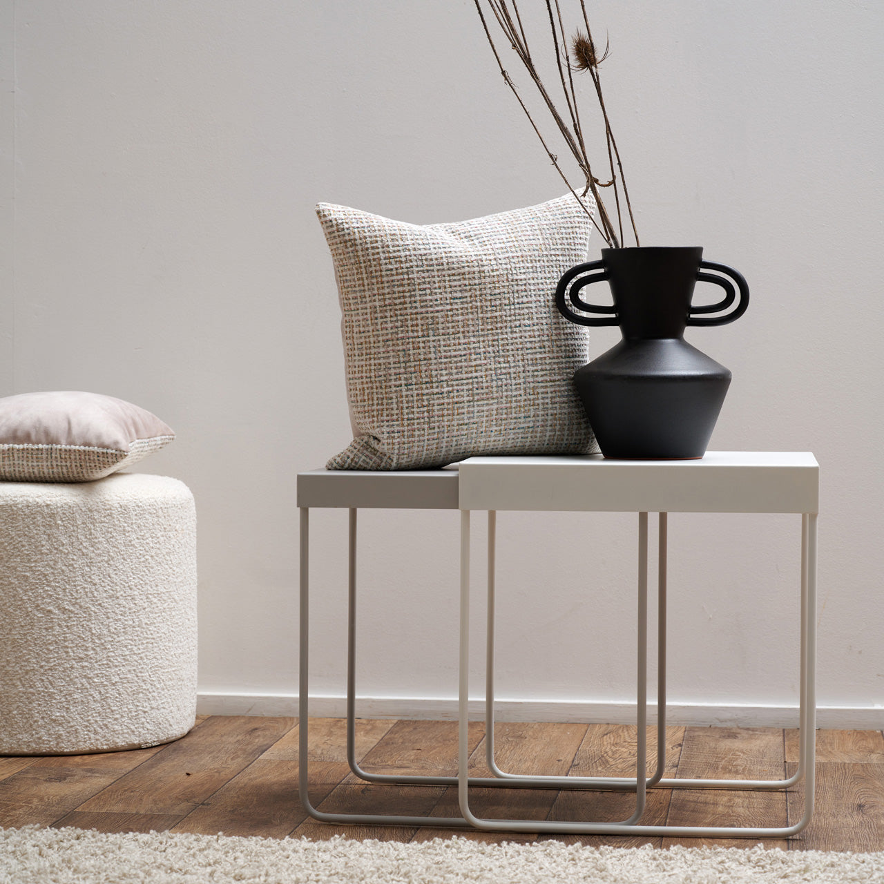 Hochwertiges Jacquardstoff-Kissen aus dem Hause Apelt! Ein besonderes Jacquardgewebe im klassischen Chanel-Stil mit feinen Chenillegarnen kunstvoll gewebt. In drei schönen Wohnfarben, geschaffen für zeitgemäßes Einrichten mit Textil. Die eleganten Kissenhüllen haben eine passende Samtabseite, einen praktischen Reißverschluss. Das hochwertige Material besteht aus 100% Polyester. Das Kettgarn besteht aus 100% recycelten PET-Flaschen. Waschbar mit 30°C im Schonwaschgang, feucht aufhängen, auf 2 Punkt bügeln. Schadstoffgeprüft nach OEKO?TEX® STANDARD 100 (16.0.97246) und made in Europe.