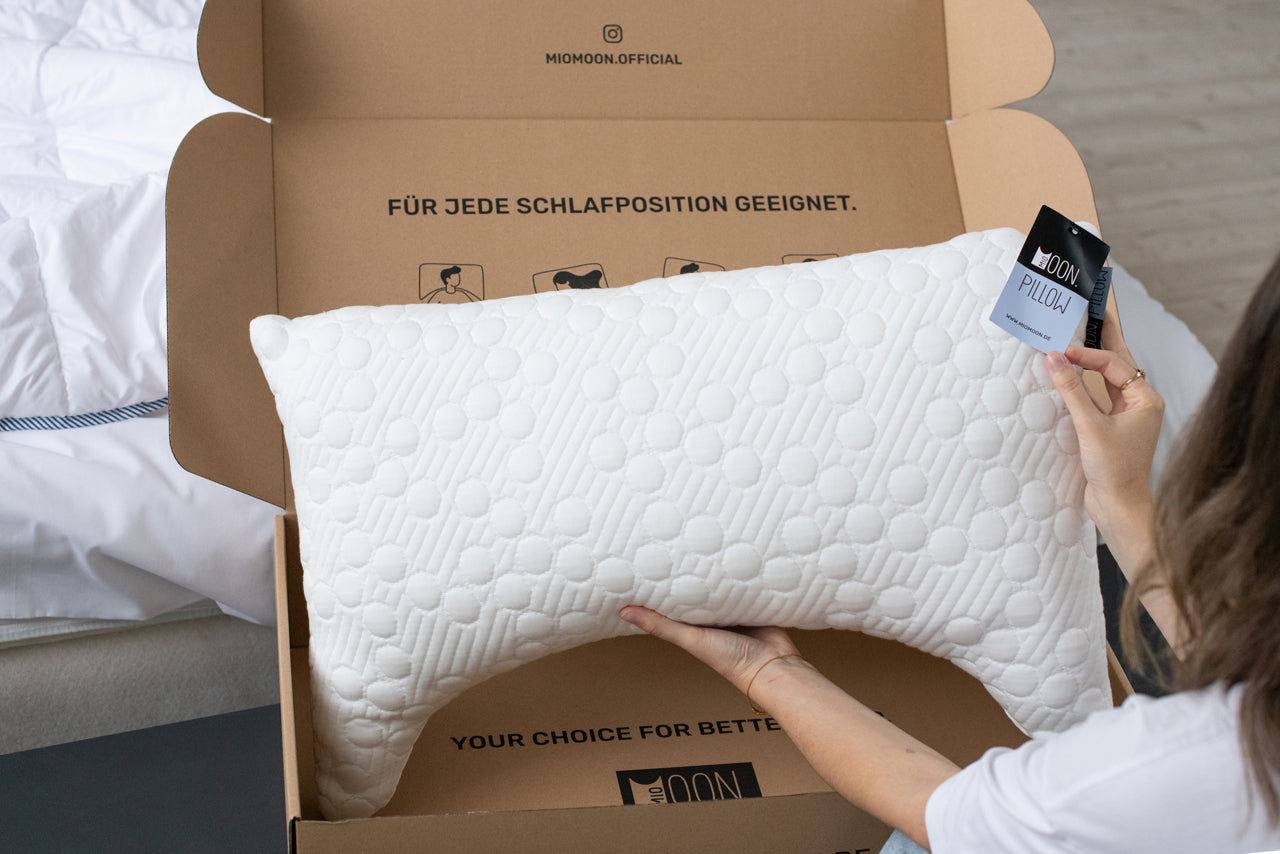 Lieferzeit 3-5 WerktageEntspannter und erholsamer Schlaf dank unseres einzigartigen MIOMOON Nackenkissens – Die einzigartige Mond-Form sorgt für einen entspannten & erholsamen Schlaf – egal für welchen Schlaftypen. Die von uns entwickelte innovative Faser- und Schaumfüllung (Foam and Fiber) passt sich optimal jeder Schlafposition an und lässt sich wie ein Daunenkissen ganz leicht wieder aufschütteln. Der hochwertige Kissenbezug ist atmungsaktiv und waschbar. Die Soft Touch Oberfläche garantiert angenehmen, weichen und hygienischen Schlafkomfort. Mit dem praktischen Maß von 67 x 40 cm passt das Kissen in jeden herkömmlichen Kopfkissenbezug. Unser MIOMOON Kissen ist zudem Allergikerfreundlich, zu 100% Made in Europe und von höchster Qualität. MIOMOON – Ihre Wahl für besseren Schlaf!