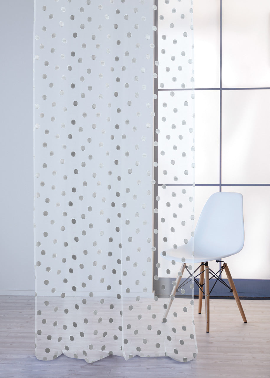 MetallösenLieferzeit 3-5 WerktageÖkotex 100Rd-j*Hochwertiger Transparentstoff, raumhoch aus dem Hause Apelt. Feiner Scherli mit All-over-Punkten. In schönen, modernen Wohnfarben, geschaffen für zeitgemäßes Einrichten mit Textil. Im Angebot als Ösenfertigschal mit hochwertigen Metallösen. Das hochwertige Material besteht aus 100% Polyester und ist im Saum mit einem umweltfreundlichen ZInkband versehen. Waschbar mit 30°C im Schonwaschgang, feucht aufhängen, auf 2 Punkt bügeln. Schadstoffgeprüft nach OEKO?TEX® STANDARD 100 (16.0.97246) und made in Europe.