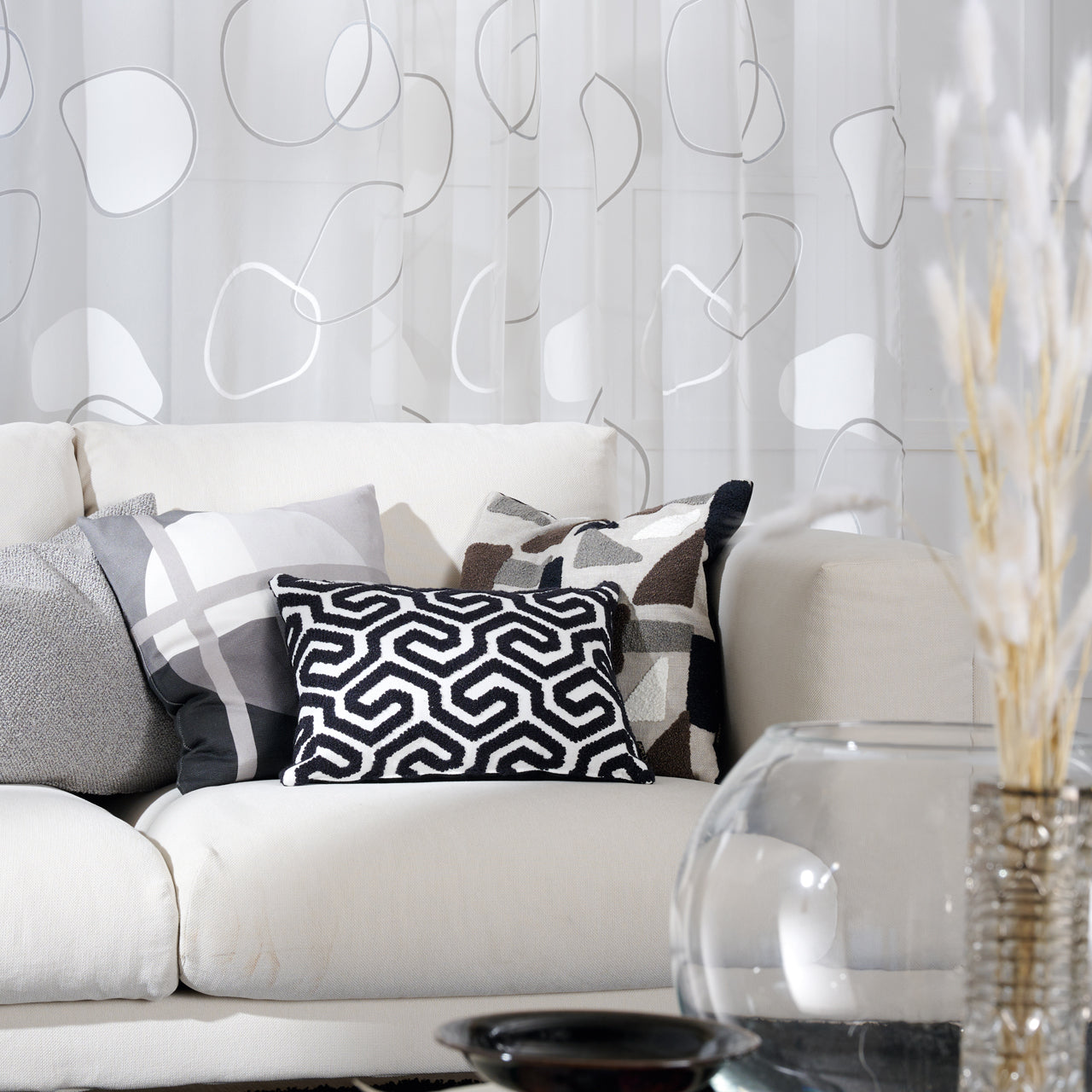 ReißverschlussLieferzeit 3-5 WerktageÖkotex 100Rd-j*Edition UNIQUE ! Hochwertiger gestickter Kissenstoff mit geometrischen Formen, modischer Bauhausstil im absoluten Trend in zwei ausdrucksstarken Farbstellungen. Internationaler Wohnstil fürs Zuhause! Die eleganten Kissenhüllen haben eine exklusive Samtrückseite und einen praktischen Reißverschluss. Das hochwertige Material besteht aus 80% Polyester und 20% feinster Baumwolle. Waschbar mit 30°C im Schonwaschgang, Kissen vorher auf li. wenden, feucht aufhängen, auf 2 Punkt bügeln. Schadstoffgeprüft nach OEKO?TEX® STANDARD 100 (16.0.97246) und made in Europe.